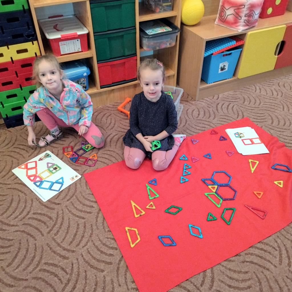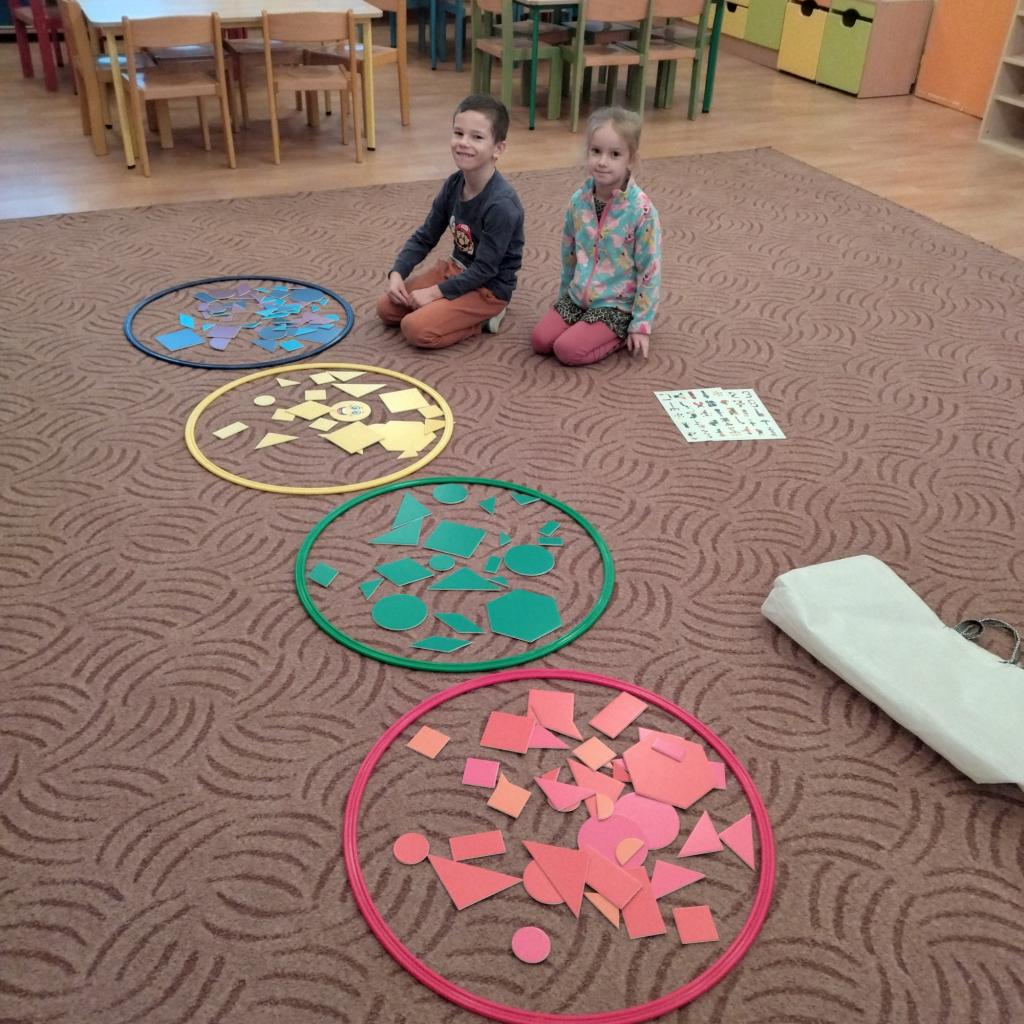 Postavím si domček, na spodu je štvorček. Na strechu dám trojuholník, nech nás dáždik nehnevá a strecha je hotová. Dvere ako nemá nik, veľký hnedý obdĺžnik.