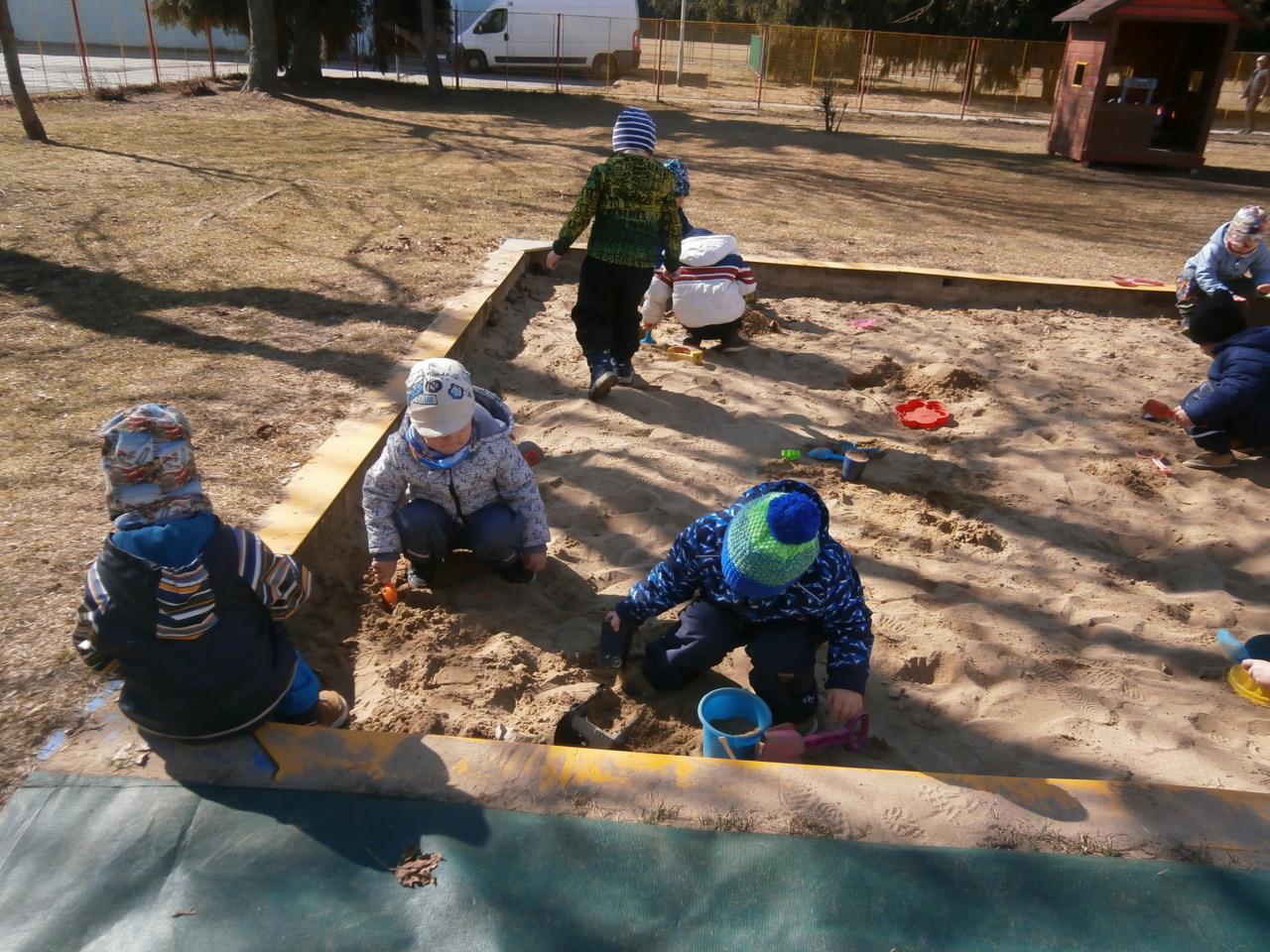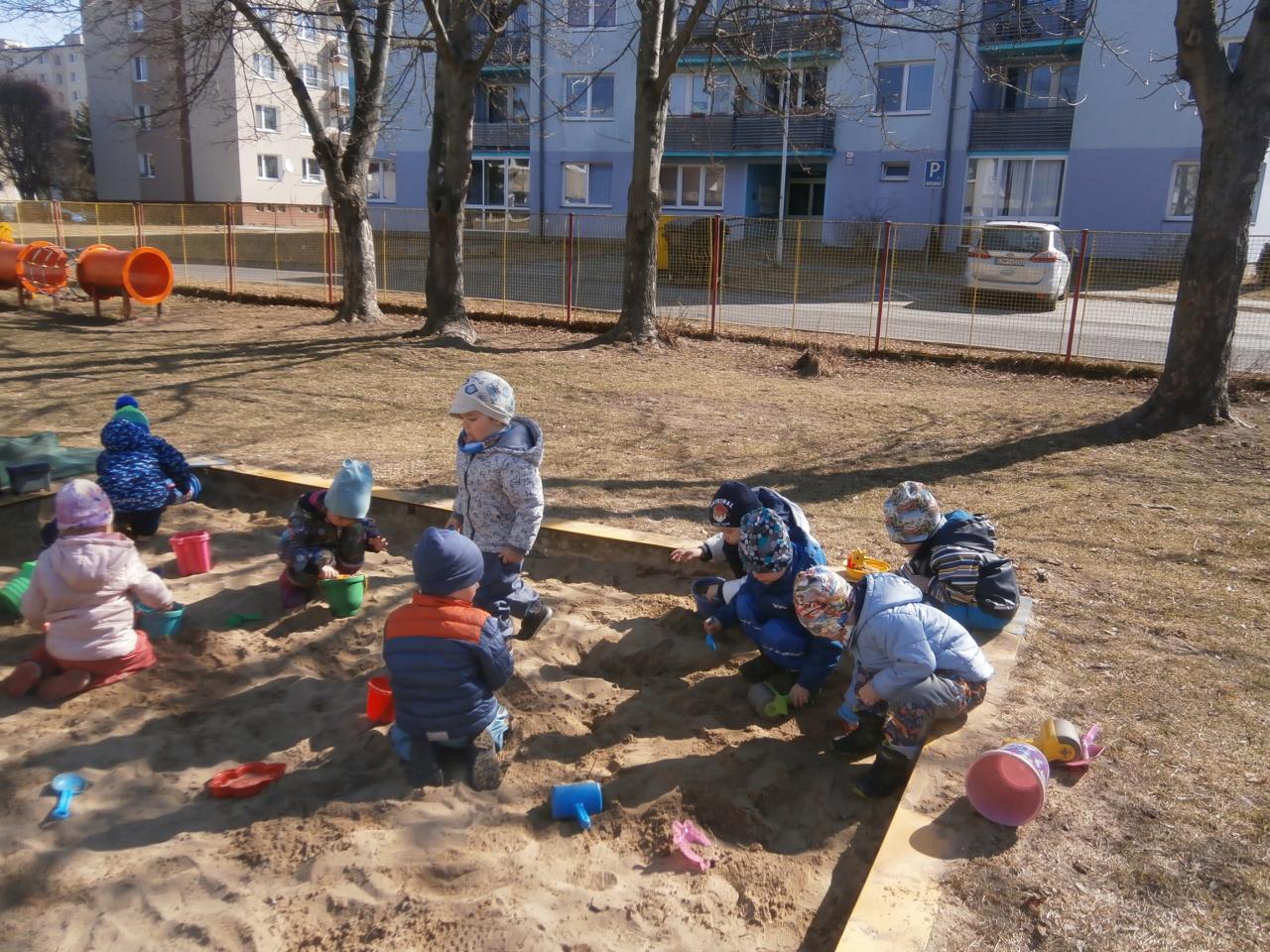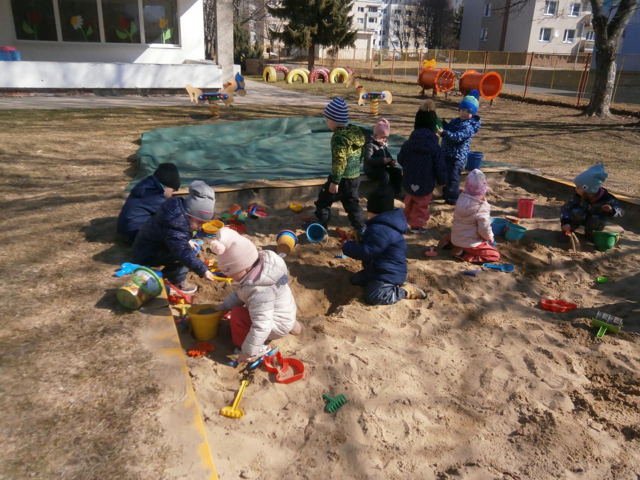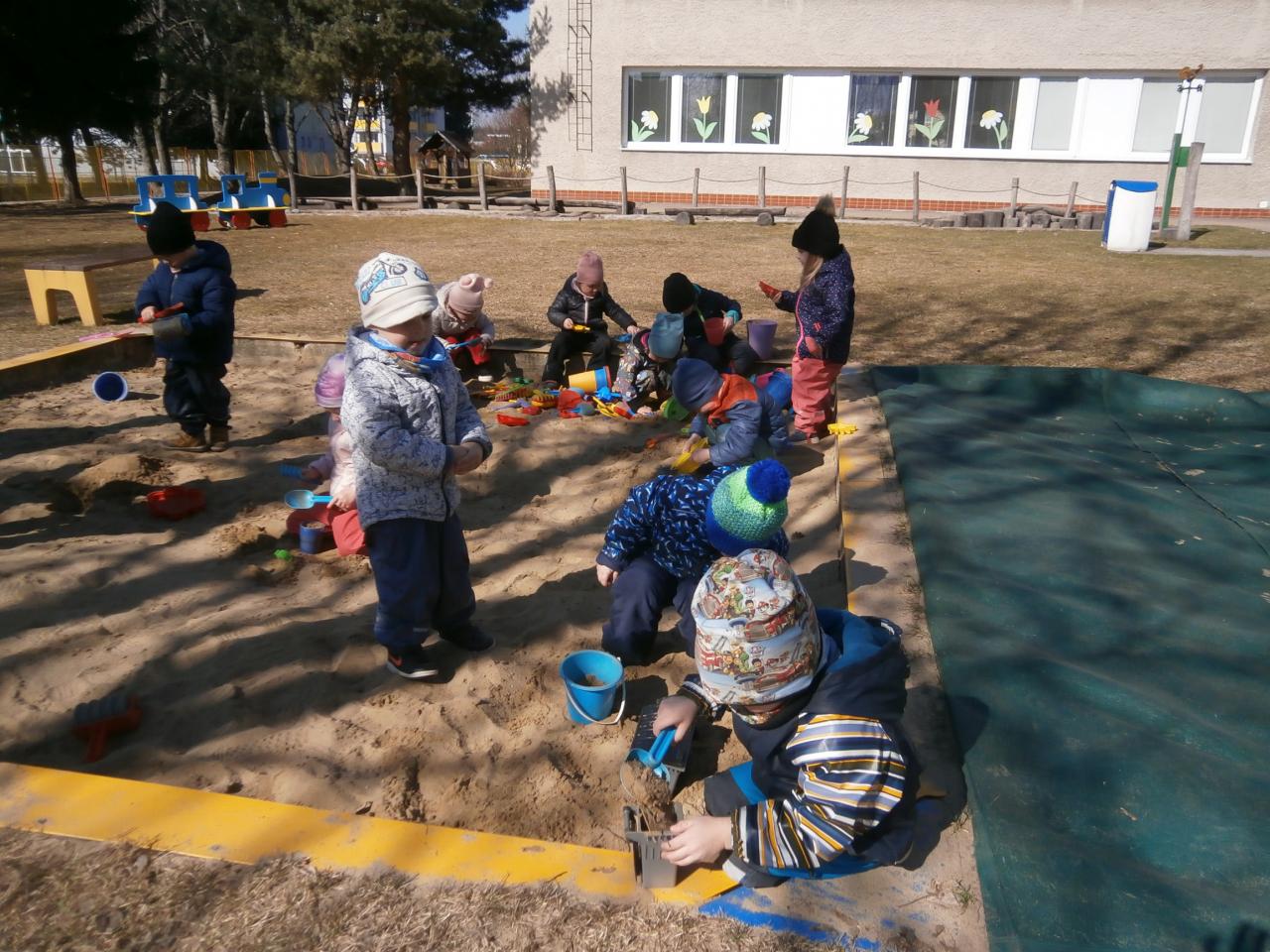 Kýblik, malá formička, lopatka i hrablička. Všetci sme si pomáhali, naberali, presýpali. Do úst piesok nedávali, tunel sme si vystavali.