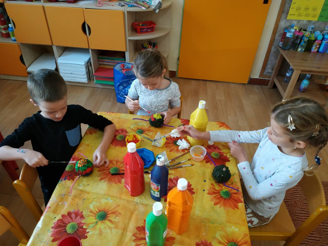 maľovaním okrasných tekvíc sme spoločne vytvorili dlhú stonožku